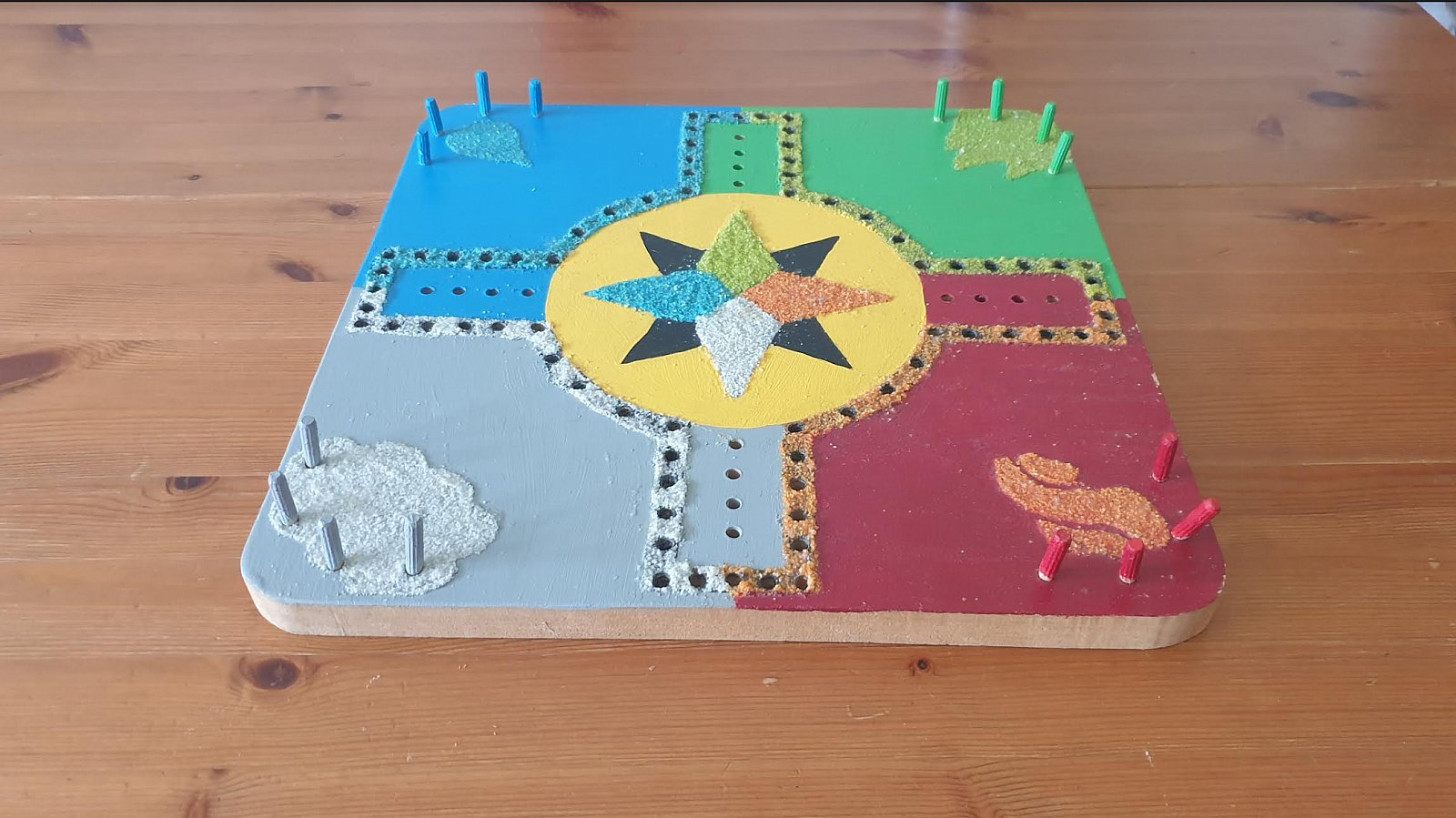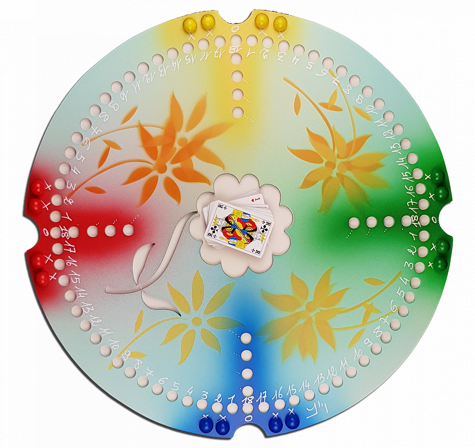 | Heddy Rouvière | Site de Heddy | Plateau en bâche (enroulable, lavable), différents thèmes, pions "fioles" remplies de sable coloré |